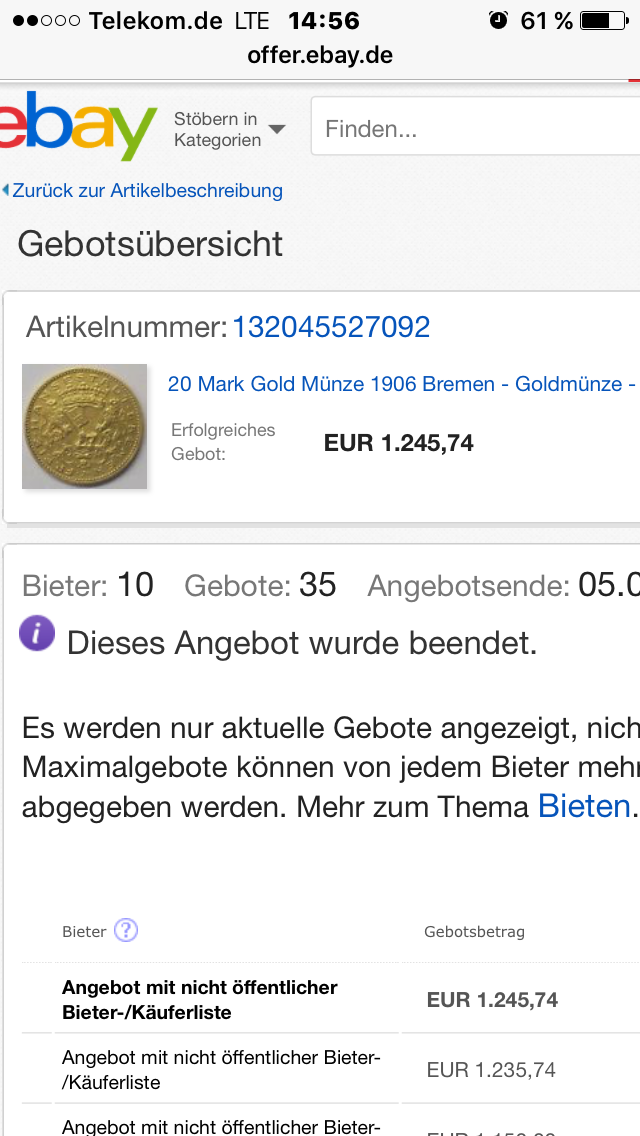 Er hat noch diverse andere Münzen aus Gold und Silber versteigert. Hoffentlich hat dort niemand aus dem Forum zugeschlagen.