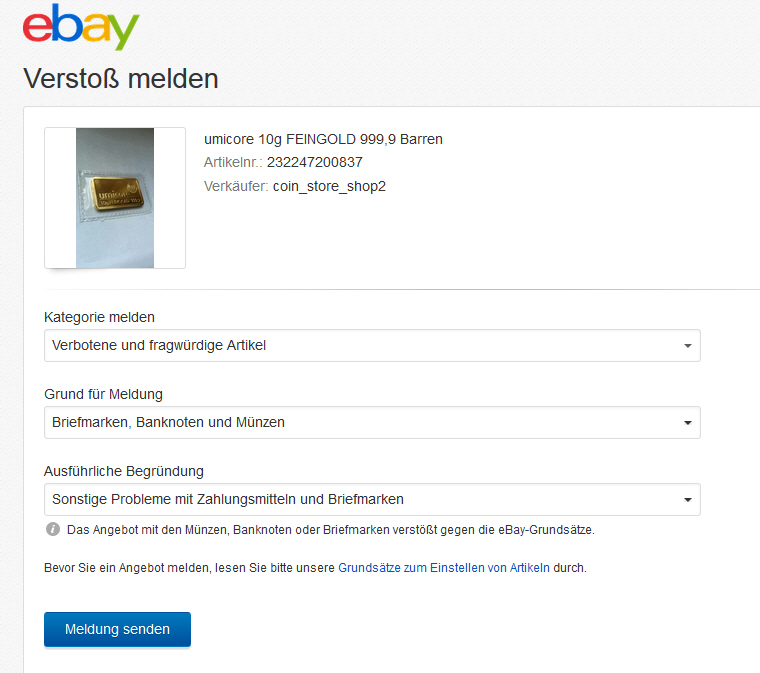 ...und löscht Negativbewertungen bei gefälschten Goldbarren.