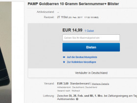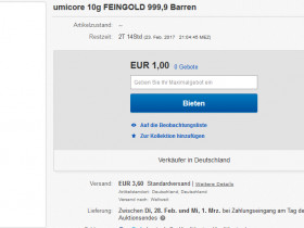 1 ounce Goldbarren für 50€ mit 70 cent Versandkosten und jemand hat sogar ein Gebot abgegeben