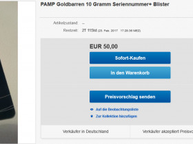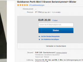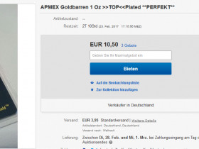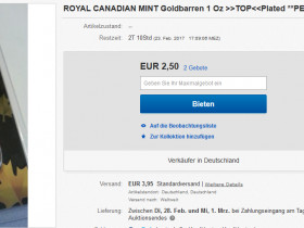 1 ounce Goldbarren für 50€ mit 70 cent Versandkosten und jemand hat sogar ein Gebot abgegeben