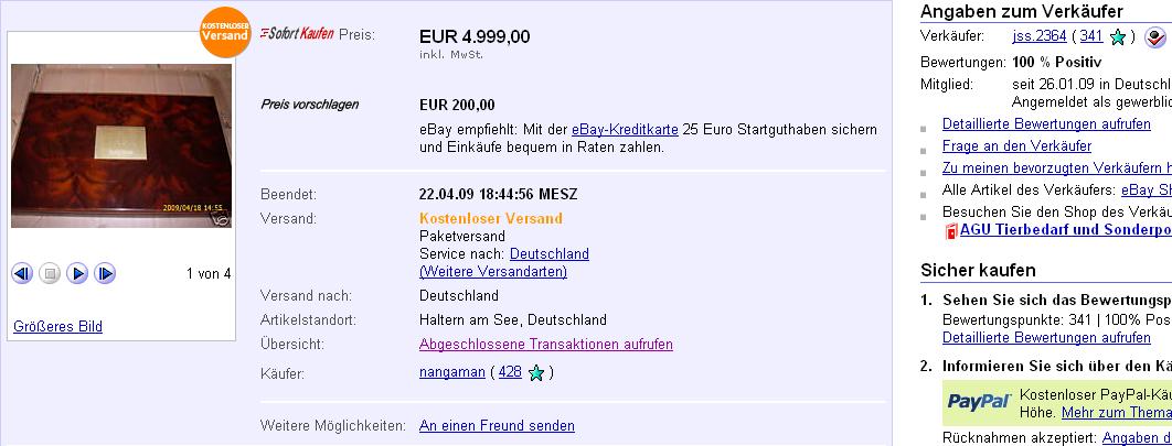 Schon komisch, er hat einen Sofortkaufpreis von 4999 Euro oder so ähnlich angegeben und verkauft es für 200 Euro. Na ja, was solls.