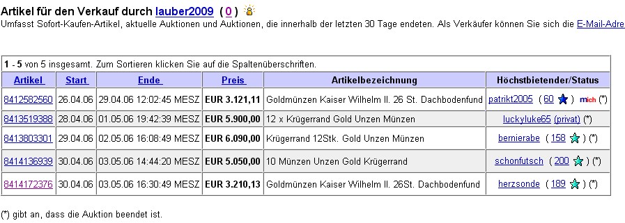 Wer sich darüber freut in einer Auktion den Zuschlag erhalten zu haben, der sollte bedenken das er der einzige ist, der so blöde war diesen Preis zu zahlen.