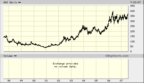 - oder ich nehme den HUI als Benchmark. Ich habe z.B. den größten Teil investiert in der Korrektur Mitte 2002 bis Mitte 2003, und dem folgenden Ausbruch.