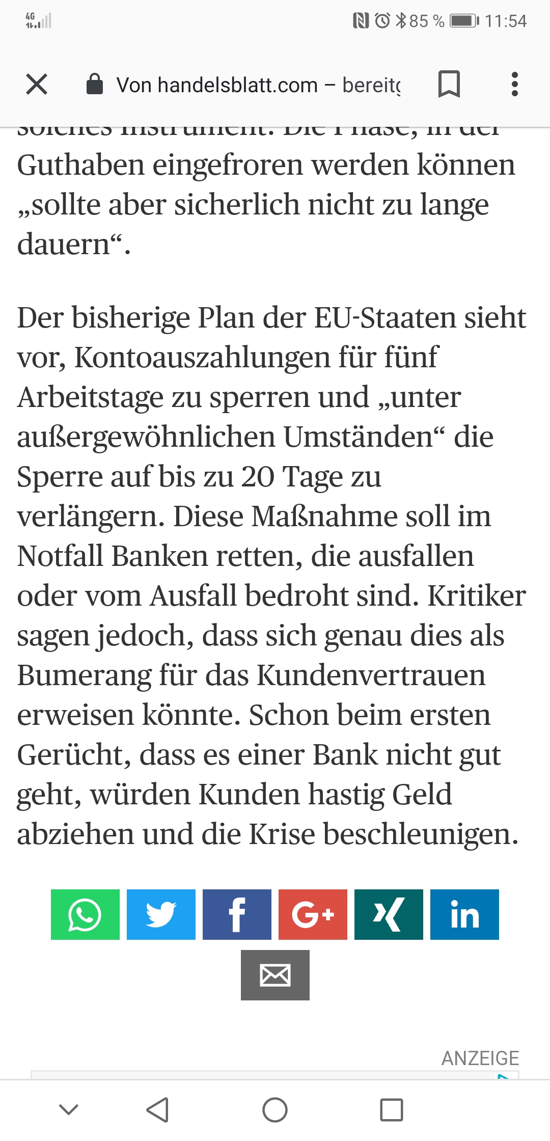 Das dürfte auch funktionieren solange es nur einzelne Banken betrifft aber wehe dem alle oder viele wollen gleichzeitig an ihre Ersparnis?!Dann war es das....