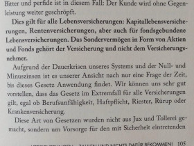 also falls noch jemand Forderungen gg. Vers. hat, in einem Land in dem per Tel.anruf AtomKW still gelegt und damit die Aktionäre enteignet werden, sowie per Pressekonferenz aus Südafrika demokr. Wahlen rückgängig gemacht werden - dem ist echt nicht helfen...Viel Spass noch mit LV, Riester usw...