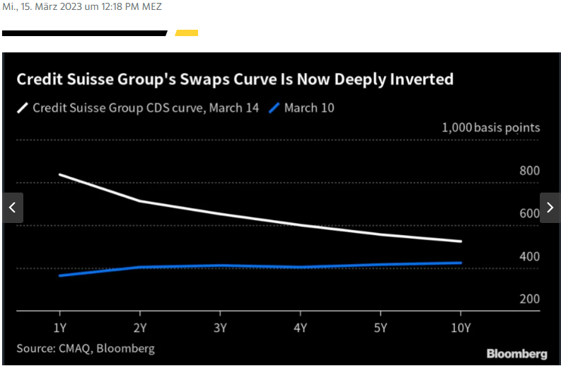 Die CDS-Kurve bei Credit Suisse ist in den letzten vier Tagen invers geworden ... d.h. es herrscht hauptsächlich kurzfristige Nervosität vor und es ist entscheidend, was in den nächsten Tagen passiert.