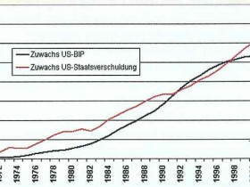 "Man kann mit gewissem Recht argumentieren, der gesamte akkumulierte BIP-Zuwachs der USA von 1971 bis heute in Höhe von etwa 7,5 Billionen Dollar sei ausschließlich durch Verschuldung entstanden. Die o.g. M3-Steigerung in diesem Zeitraum war mit etwa 8,5 Billionen Dollar ebenfalls nicht zufällig fast gleich hoch."