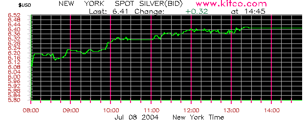 Spot silver was at $6.43/45, up from $6.39/42 last