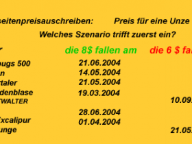 gute Idee. Ich glaube, dass die 8 Dollar-Schwelle bei Silber am 21.5.2004 geknackt wird.
