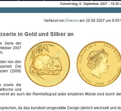 Alles anzeigenSchon bekannt? Eine neue Goldunze Koala 2008 von Perth kommt!