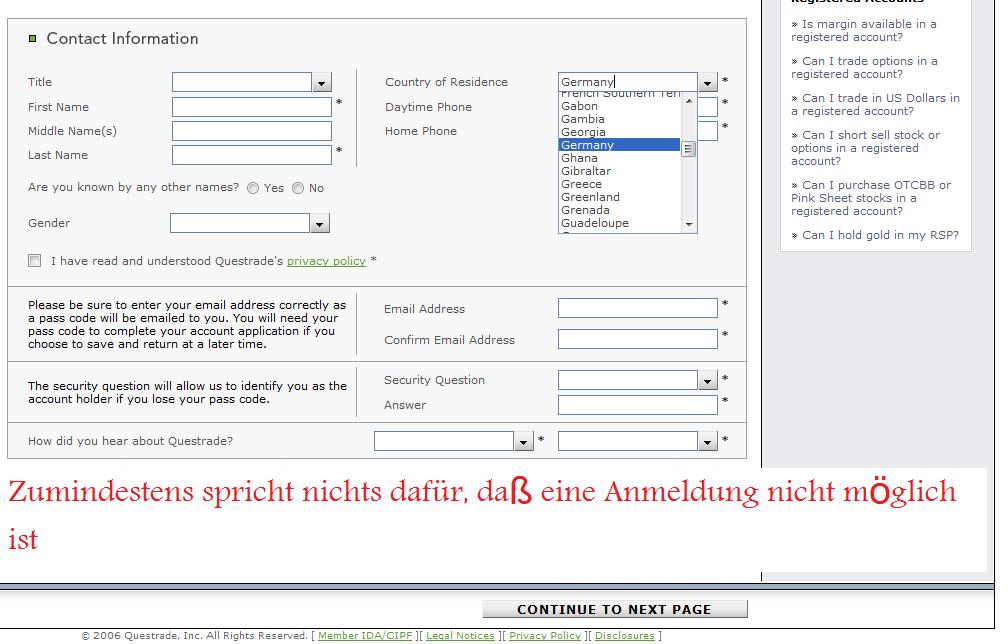 hier ein Bildchen zum Can.Broker Questrade. Sehe keine Hürden dort ein Konto aufzumachen.