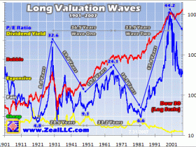 Let us move to 1974 or 1982. Imagine that someone was jumping up and down asking you to buy the Dow or leading stocks when their PE ratios were below 10 and their dividend yields were between six and eight. What would you have thought of them? You would have looked at the past, extrapolated into the future and determined that the person was crazy. Oh yes, Richard Russell was that person encouraging everyone he could to get into the market both times.
