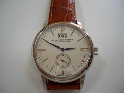 Bei der Lange ist das kleine Zifferblatt der ausgelagerten Sekunde viel zu klein. Und Du kannst sicher das Datum auf 39 stellen. Neupreis ca. 40 Euro.