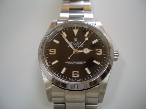 Bei der Rolex Explorer I sind die Indexe auf dem Zifferblatt zu groß und die Zahlen 3, 6, und 9 zu klein. Man kann sogar bei genauen hinsehen die "eingelaserte" kleine Krone im Glas bei 6 Uhr sehen. Beim Original sieht man sie nur sehr schwer.
