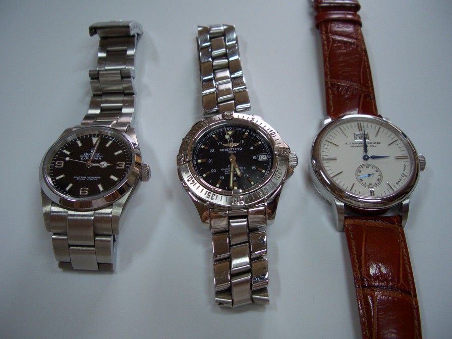 Die Lange & Söhne und Rolex sind Faelschungen, die ich mal in Thailand gekauft habe. Aber auch beide Fakes sind Automatik Uhren, kein Quarzwerk mit Batteriebetrieb. Wie einige schon geschrieben haben, die Lange macht eigentlich schon einen sehr guten Gesamteindruck. Das Biest ist auch ziemlich schwer und eigentlich fuer meine duennen Arme fast zu gross.