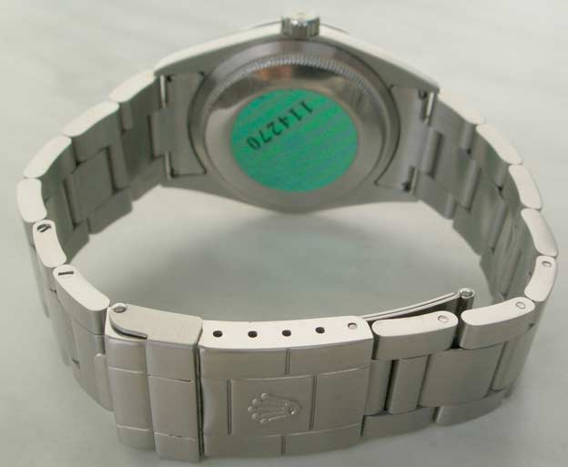 Die Bandanstöße sind viel zu lang, müssen ca. 1 mm kürzer sein als die Hörner vom Gehäuse. Die Nummer 114270 darauf stimmt auch nicht, da muß die Nummer 78690 stehen. 114270 ist die Ref. Nummer der Uhr selbst, hat aber mit dem Band nichts zu tun. Neupreis ca. 35 Euro.