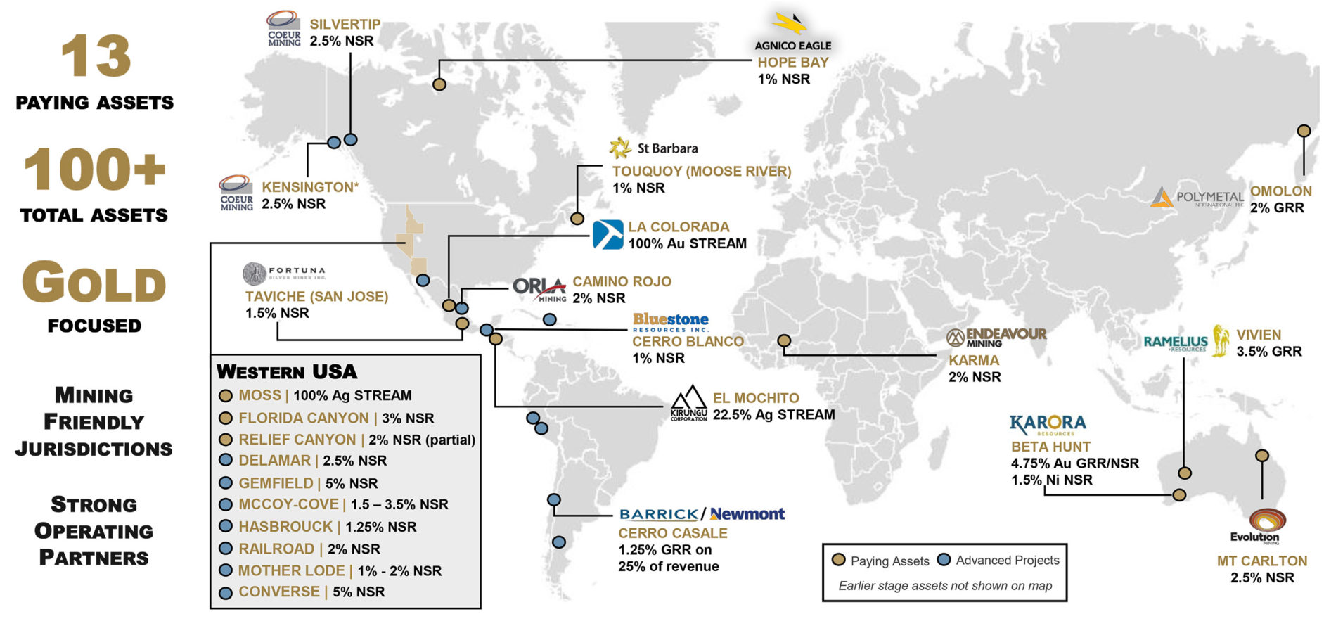 During Q1-2021, the Company generated totalcash of approximately CDN$8.3million, with approximately CDN$0.2millioncoming from royalties on the open pit portion contained within the Company’s 3% NSR at the Canadian Malartic Mine. Royalties from the open pit portion of the Canadian Malartic Mine commenced at the end of Q4-2018 (the Company’s core underground royalties at Canadian Malartic are notyetin production). The Canadian Malartic Mine is the largest gold mine in Canada and is operated by Agnico Eagle Mines Limited (“Agnico Eagle”) and Yamana Gold Inc. (“Yamana”). The remainder of the cash generated during the quarter came from optionpremiums (CDN$0.9million), dividends (CDN$0.2million) and capital gains fromequity investments in Agnico Eagle/Yamana (CDN$7.0million).