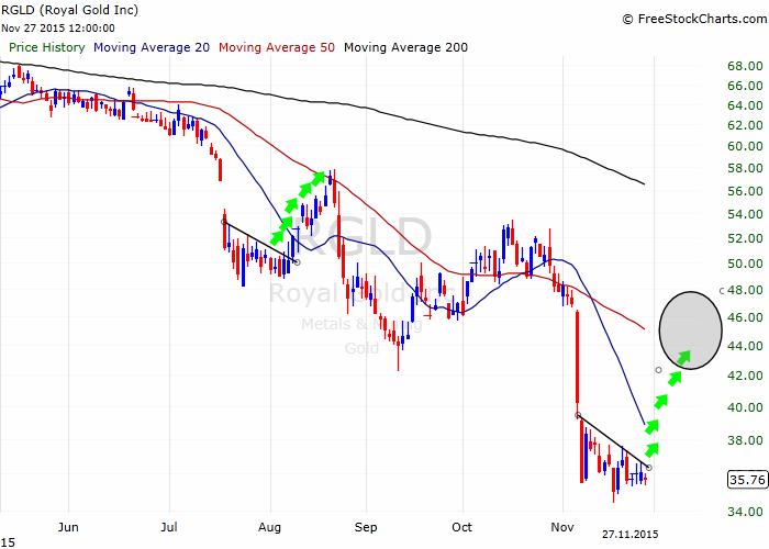 Die Roylties haben in der letzten Korrektur Kursverluste erlitten ähnlich den Produzenten und Explorern, aber in etwas geringerem Ausmaß, da sie zuvor nicht so stürmisch gestiegen waren.