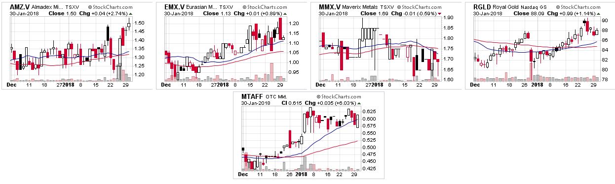 Bei OR, WPM, MMX, ANZ und ELY dem gegenüber weniger los.