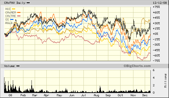 In einem aktuellen Vergleich relativiert sich dies, aber die beiden Royalty-Schwergewichte liegen klar vor den Spitzenminen und dem HUI.