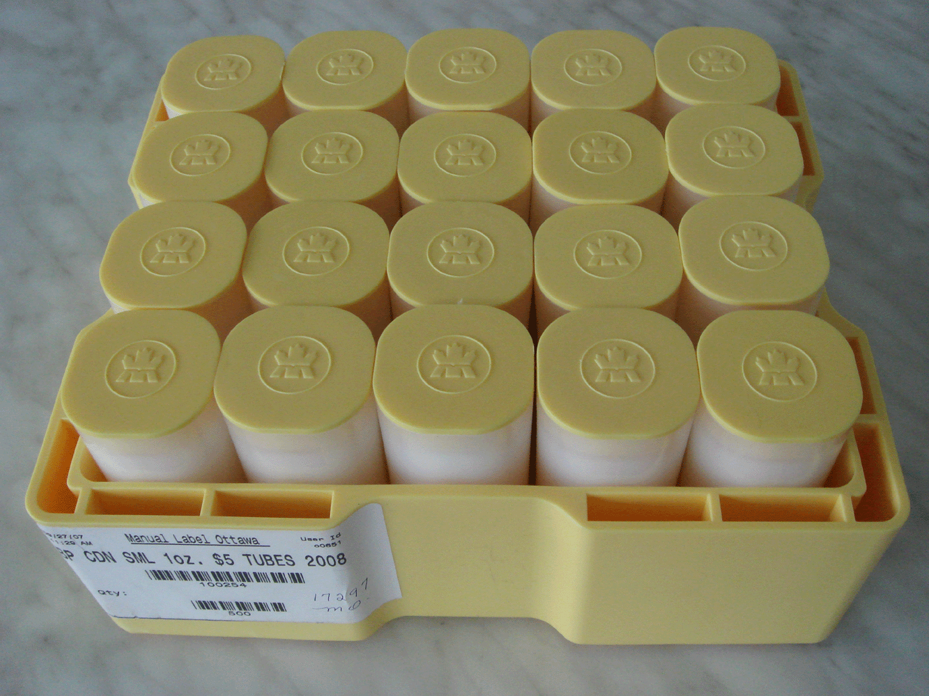 Bei den 2008er Maples sind wohl nun 25 Stück in einer weiss/durchsichtigen tube mit gelbem Deckel. 20 Stück 25er tubes = 500 maples passen in eine gelbe Versandbox.