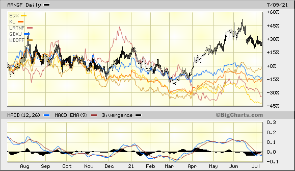 Entgegen früheren Zweifeln entwickelt und hält sich Argonaut sehr gut: Im 1J Vergleich vs Peers (WDO, PGM, KL, EQX + GDXJ) ist ARNGF überaschend stark... ![]()