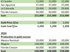 Für Magino werden nur die Cashkosten pro Unze angegeben.