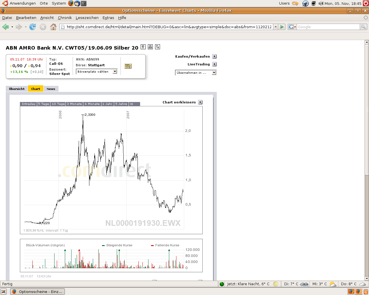 Besonders oft erwähnt wurde in diesem Lager der Silber Call ABN099 mit Basispreis 20 USD und einer Laufzeit bis irgendwann in 2009.