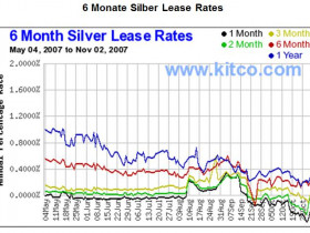 Grundsätzlich gilt bei den „lease rates“ (Leihzinsen), wie auch bei allen anderen Märkten auch, das Prinzip von Angebot und Nachfrage. Ist ein Markt, z.B. der Silbermarkt mit physischer Ware überversorgt, so sind die Leihzinsen prinzipiell niedrig, bei einem Unterangebot gilt das Umgekehrte. Doch das kann man nicht pauschalisieren – denn selbst wenn am Spotmarkt ein Überangebot herrscht, können die Leihzinsen hoch sein. Wie kommt das? Die Höhe der "lease rates" hat im Prinzip nichts mit dem Spotmarkt zu tun. Es kommt hier vielmehr darauf an, wie viel an Gold bzw. Silber zur Verleihung zur Verfügung steht. Wobei wir wieder beim Prinzip von Angebot und Nachfrage wären – die "lease rates" bilden praktisch die Entwicklung eines „eigenen Marktes“ ab. Sie zeigen, wie hoch der Umfang an physischer Ware ist, die zur Verleihung zur Verfügung steht. Dieses „Leihangebot“ kann sowohl von Verkäufen aus Lagerbeständen, als auch in Form von Vorwärtsverkäufen zur Verfügung gestellt werden. Zusammenfassend kann man sagen: Übersteigt die Nachfrage am „Leihmarkt“ das Angebot an physischer Ware, so sind die Leihzinsen hoch – herrscht ein Überangebot, so sind die lease rates niedrig. Die "lease rates" werden für die folgenden Zeiträume ausgewiesen: 1 Monat, 2 Monate, 3 monate, 6 Monate und 12 Monate. Beim Prozentsatz handelt es sich um Jahreszinsen.