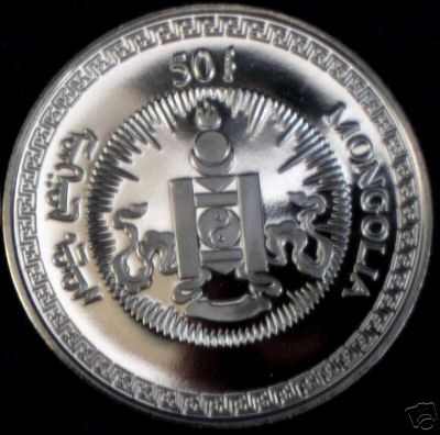 Allerdings gabs von der 1999 Jahr der Erde mit dem Hasen eine 50 Tugriks in Kupfer/Nickel/Zink. Auflage 25.000, Wert laut Katalog 15 €