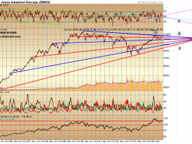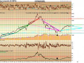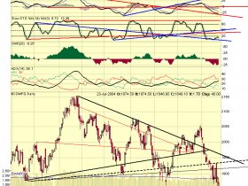 Wie dem auch kurzfristig sei, der DOW& Co befinden sich am Ende monatelanger Dreiecke und eine Impulsbewegung entweder nach oben oder unten koennte in den naechsten Wochen bevorstehen.