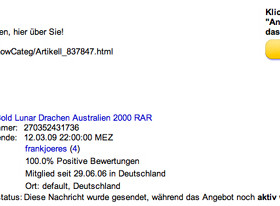 • Ich hatte auch auf den Drachen von "ICH" geboten, eben kam folgende E-Mail von eBay: