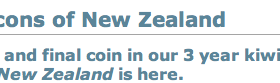 • Um etwas Klarheit in die Kiwis zu bringen, sollten wir vielleicht die verschiedenen Münzserien auseinanderhalten. Die erste Serie "New Zealand Silver Dollar" war von 2004 bis 2008. Wegen des Erfolges des Motivs gab es dann die Serie "Icons of New Zealand", die mit der 2011er Ausgabe beendet ist. Neu war bei dieser Serie die 1/4oz Goldmünze. Weitere Münzen mit Kiwimotiv werden dann ab 2012 wohl wieder einer anderen Serie zugeordnet. Lassen wir uns überraschen, welche verschiedenen Prägungen uns da angeboten werden.
