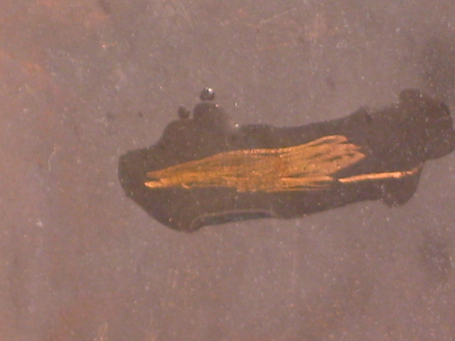Wir müssen also unsere Münze mit einer Säure prüfen, die etwas unter 22 Karat liegt und den Strich nicht auflösen kann. Wir nehmen dafür unsere 21,6 Karat Säure. (Bild1)