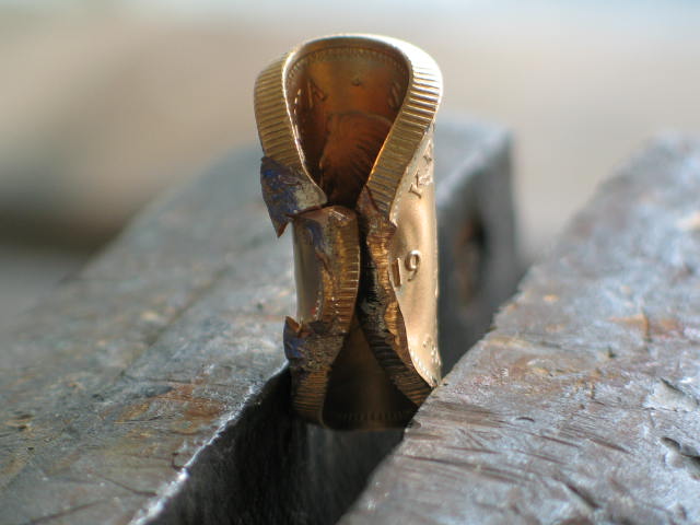 Eine solch "weiche" Goldmünze müßte im Schraubstock relativ gut zu knicken sein. Auch ein Zeichen von "Echtheit".