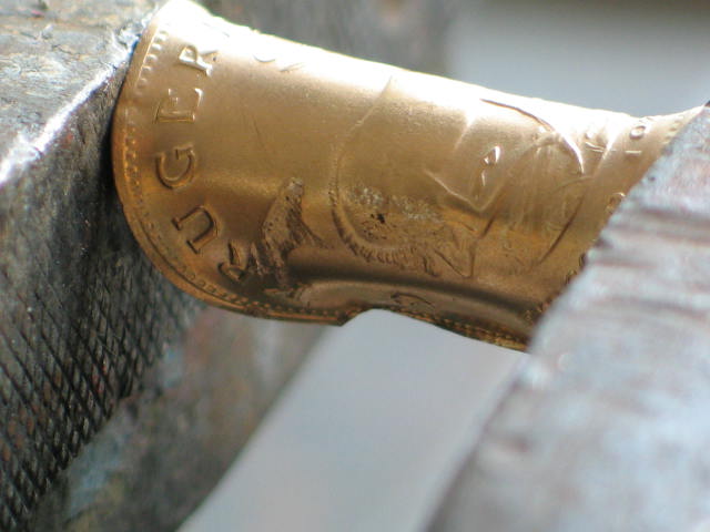 Also ne 10 Unzen Münze so zu biegen…da brauchste schon was elektrisches zu, händisch ist das kaum zu schaffen. ![]()