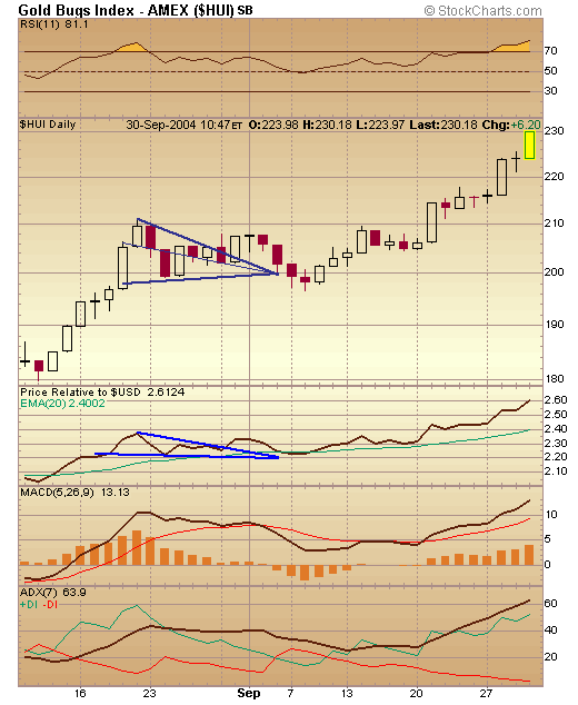 HUI & XAU -stabil trotz Goldpreisrueckgang von $10 in einer Woche.