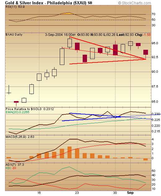 HUI & XAU -stabil trotz Goldpreisrueckgang von $10 in einer Woche.