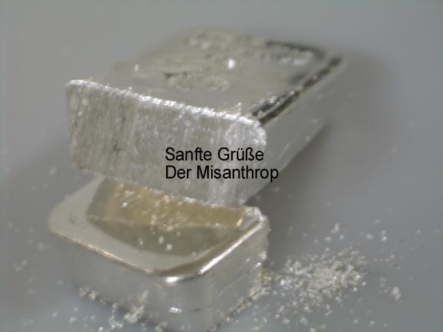 Momentan würde ich davon ausgehen, das diese "Neusilber"-Barren, wenn sie den existieren, erst bei einem wesentlich höheren Silberpreis auf den Markt kommen.