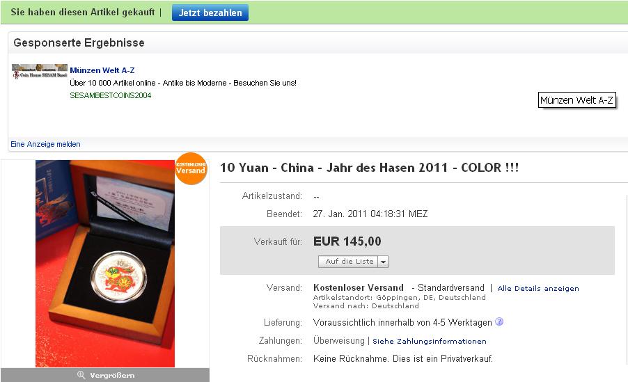 Bitte geben Sie bis 30.1.2011 Bescheid, ob Sie diese Münzen möchten!