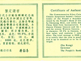 Unicorn 1995 10 Yuan PP Silber Fälschung? Das Zertifikat mit der eckigen Umrahmung ist das richtige Original, das Deckt sich auch mit diversen Gold Unicorn Zertifikaten aus 1995.