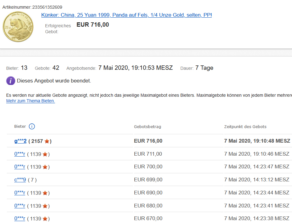 Künker ebay ist nur noch verrückt. Die Preise sind teilweise 50% höher als der Marktpreis.