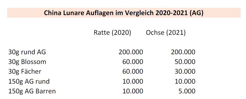 mit teilweise kleinerer max. mintage, 8o der au 5 oz riegel hat nur noch max. mintage von 600