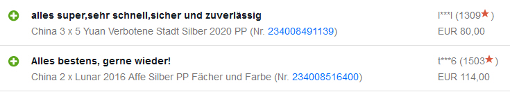 Stimmt so nicht. Am besten bezahlt haben immer die US Chinesen im Großraum New York und LA, da wurde nicht verhandelt und Express Versand per FedEX war selbstverständlich so nach dem Motto: Morgen Mittag sind die Münzen da, Hauptsache man hat viel Spaß beim Sammeln ![]()