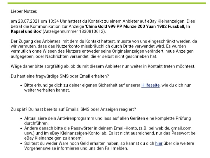 Geschieht ja meistens gar nichts, auch auf eBay......