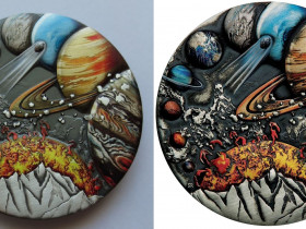 Mal eine Frage: hast Du die Münzen "in echt" vorliegen oder beruht Dein Urteil auf den Werbebildern. Kürzlich tat ich einen ganz üblen Griff ins Klo; Prägeanstalt ist die Perth Mint. Und das Druckverfahren ist digital. Bei denen sollte man wirklich aufpassen: bei echten Fotos passt es halbwegs (wie bei den 9 Planeten). Bei digitalen Animationen passt optisch rein gar nichts. Da sieht der Bind aus wie der Mubarrak in seinen jungen Jahren. Und von dem wollte ich nun wirklich keine Münze haben. Schaut und vergleicht mal.