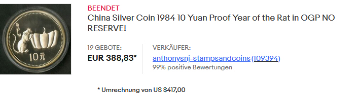 Dafür ging der 5oz Schlange 2013 gestern für 181€ auf Ebay weg......schlechte Zeiten für China in D.