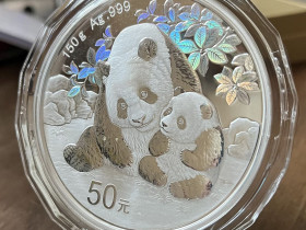 4) Panda 1990 verschweißt, 50 Yuan, 5 oz Silber