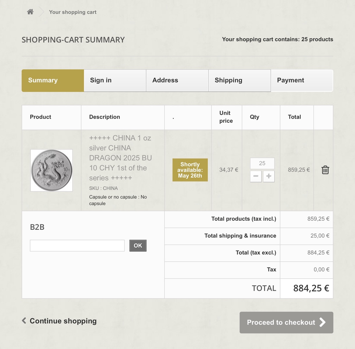 Hier wurde aber der günstigere Preis pro Münze mit 40 Euro Versand gekontert, den man ja in D nicht zahlt
