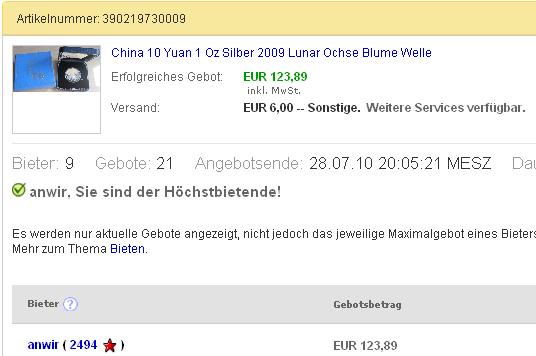 Zumindest im Silberpanda - Bereich platzen entweder Träume oder man segelt preislich am Markt zur Zeit volkommen vorbei!